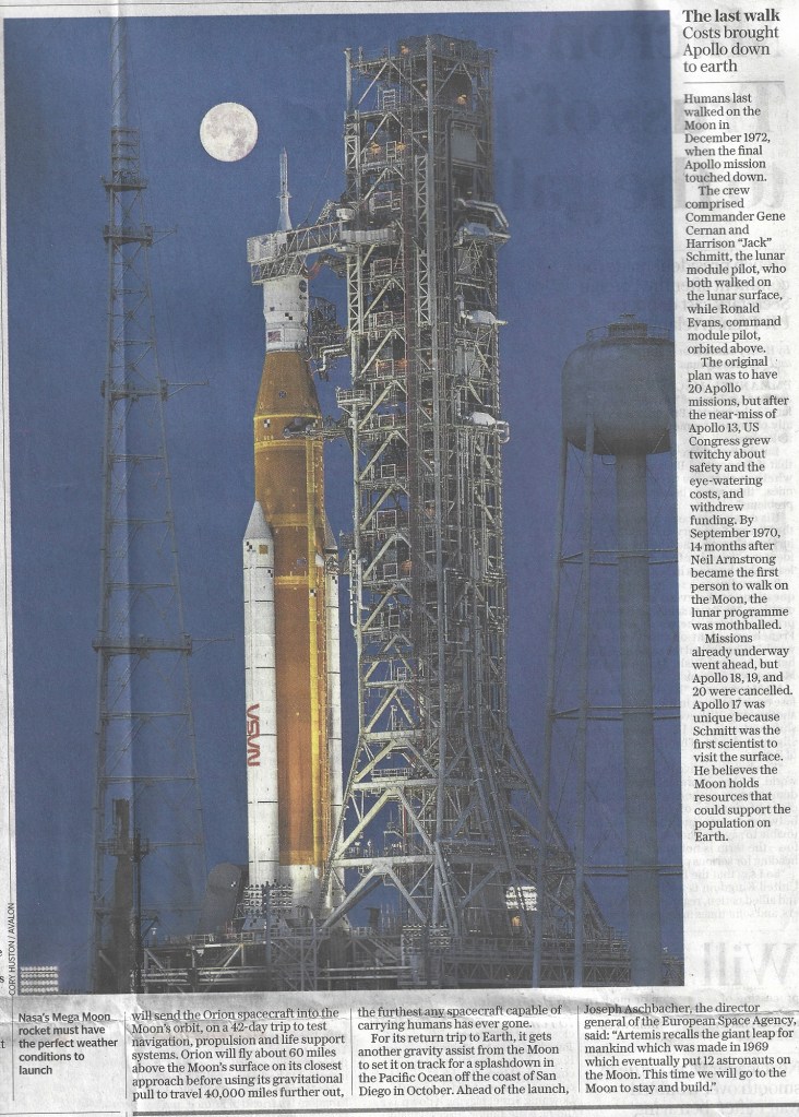 Artemis 1: First Moon mission in 50 years could be scuppered by a drop of rain (Daily Telegraph, paywall)